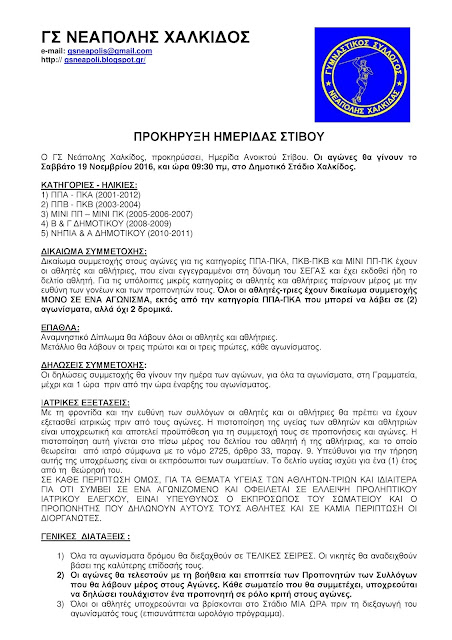 Ημερίδα Στίβου του Γ.Σ. ΝΕΑΠΟΛΗΣ ΧΑΛΚΙΔΑΣ 19/11/2016