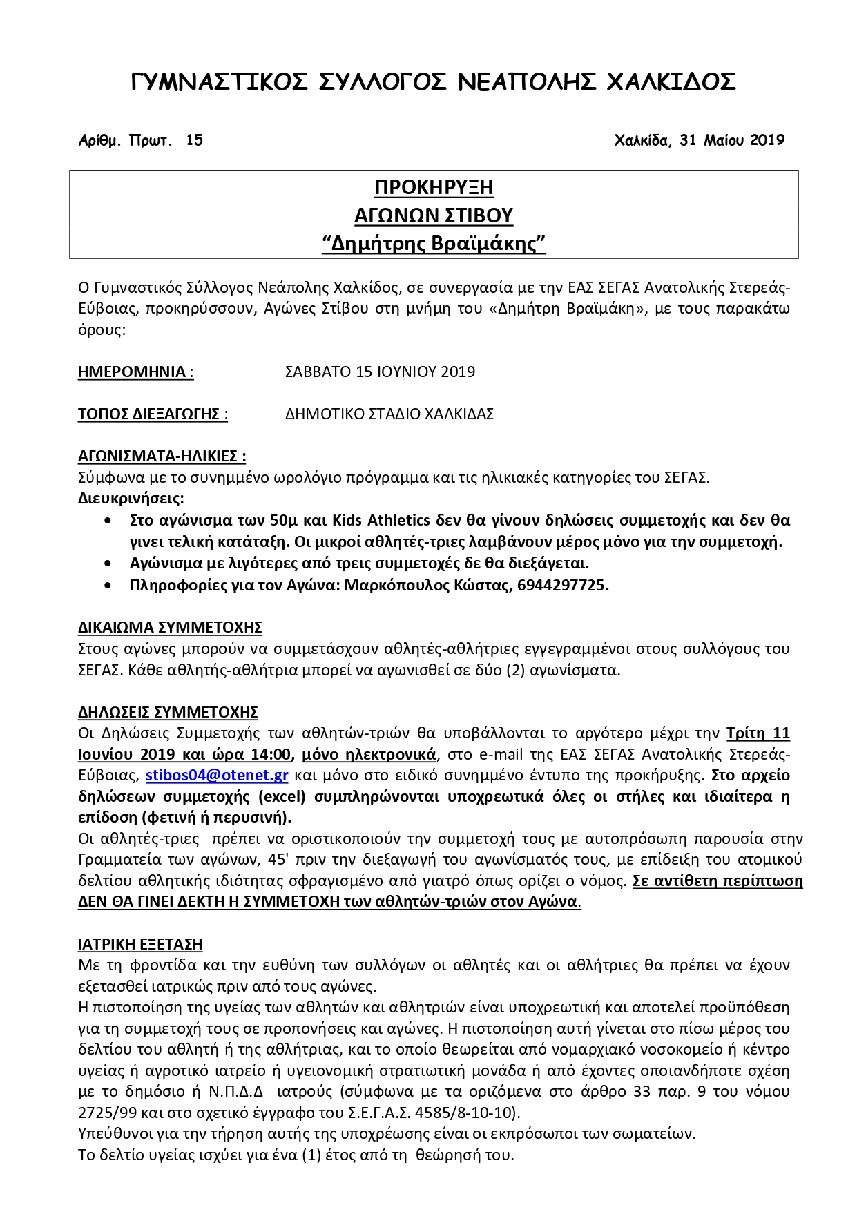 ΠΡΟΚΗΡΥΞΗ & ΕΝΤΥΠΟ ΣΥΜΜΕΤΟΧΗΣ ΑΓΩΝΩΝ ΣΤΙΒΟΥ “Δημήτρης Βραϊμάκης” ΚΑΤΕΒΑΣΤΕ ΕΔΩ ΤΗΝ ΠΡΟΚΗΡΥΞΗ ΚΑΤΕΒΑΣΤΕ ΕΔΩ ΤΟ ΕΝΤΥΠΟ ΣΥΜΜΕΤΟΧΗΣ