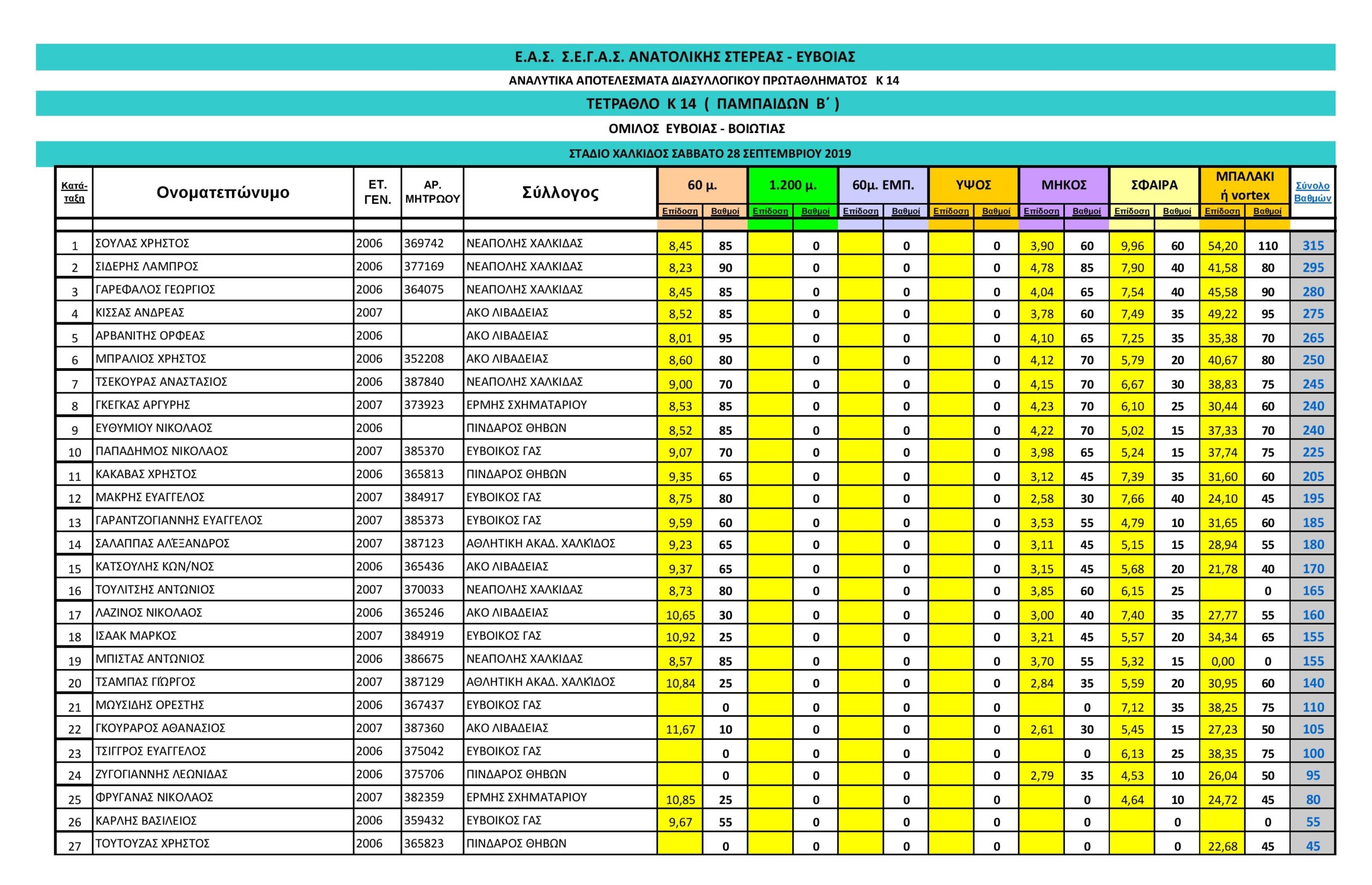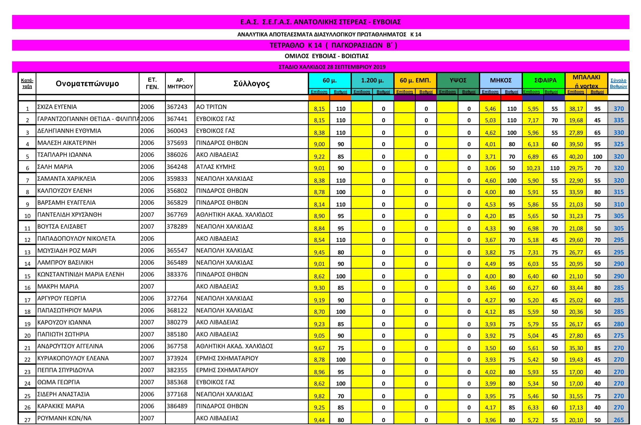 κατέκτησε ο Γ. Σ. Νεάπολης Χαλκίδας στο Διασυλλογικό Πρωτάθλημα Τετράθλου ΠΠ/ΠΚ Β που πραγματοποιήθηκε το Σάββατο 28 Σεπτεμβρίου στο Δημοτικό Στάδιο της Χαλκίδας.