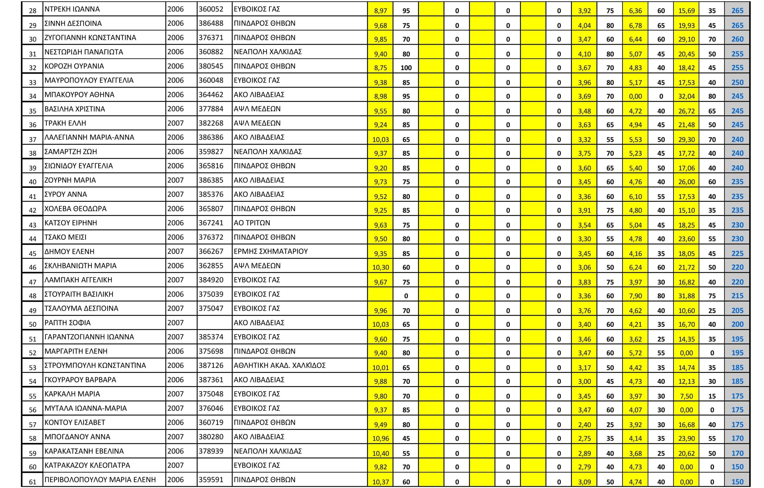 Αναλυτικά μετάλλια στα Ατομικά Αγωνίσματα πήραν: