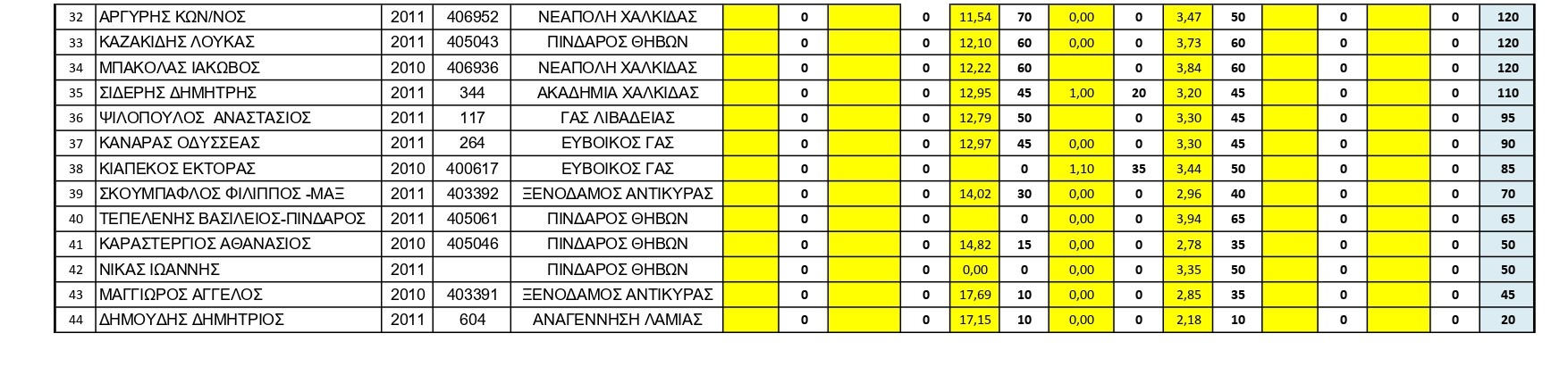 | 39 | ΚΑΤΣΑΡΗ ΑΝΘΗ | 150 ΕΜΠ | 32.67 | |