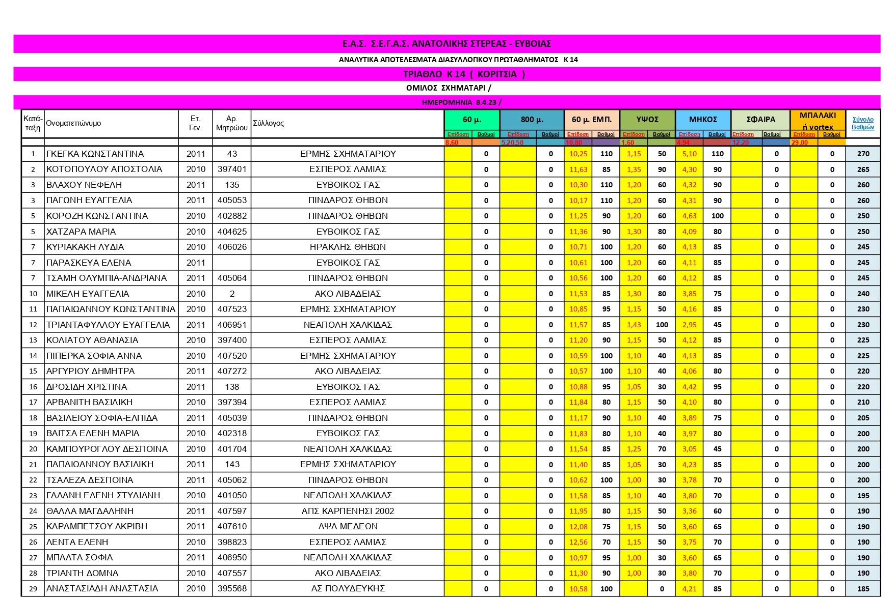 | 23 | ΜΠΑΓΚΟΥΤΣΑ ΒΙΟΛΕΤΑ | 2012 | 150 ΕΜΠ | 29.51 |