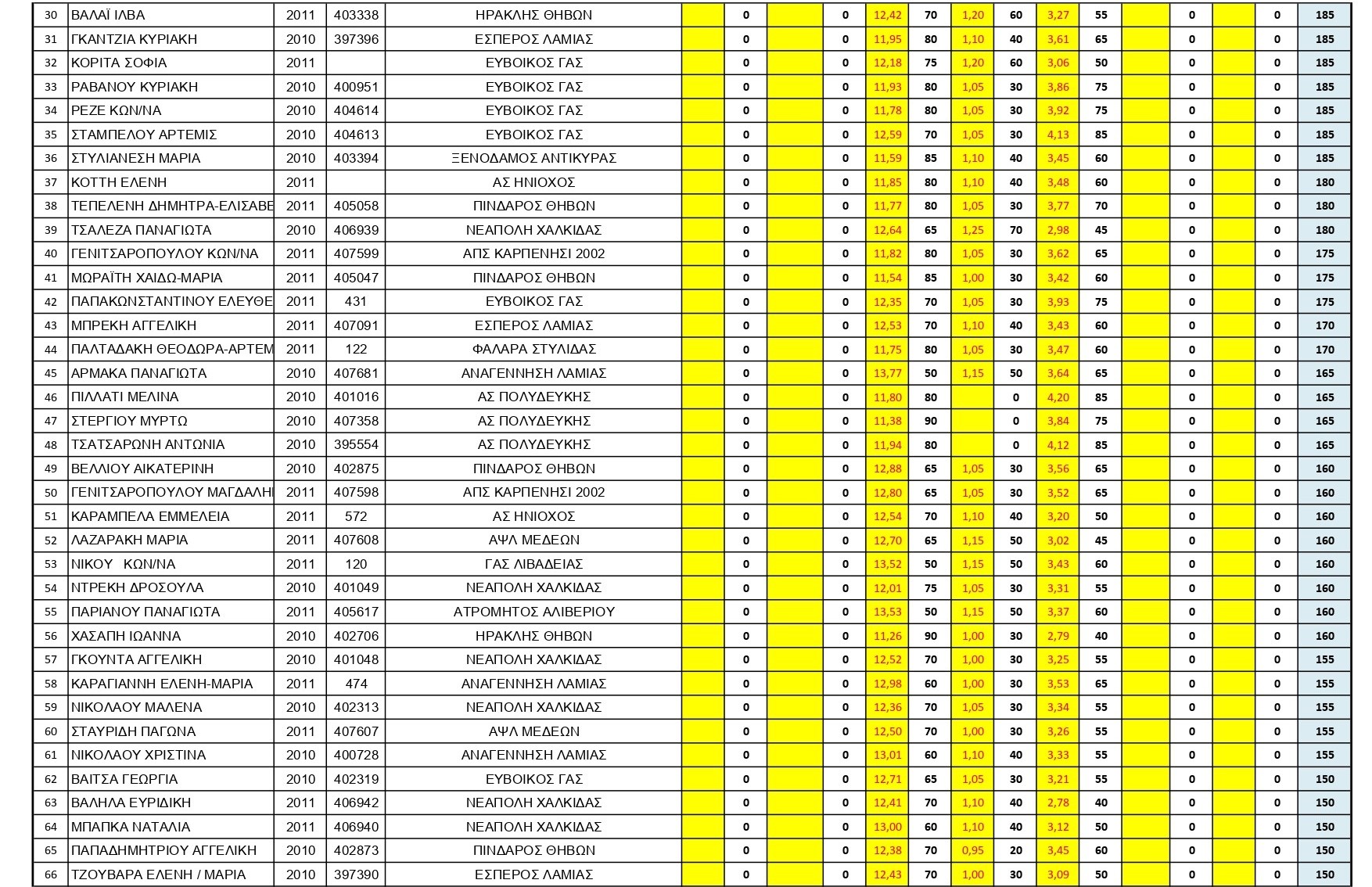 | 30 | ΚΑΤΟΥΝΗ ΑΣΠΑΣΙΑ | 2012 | 150 ΕΜΠ | 30.42 |