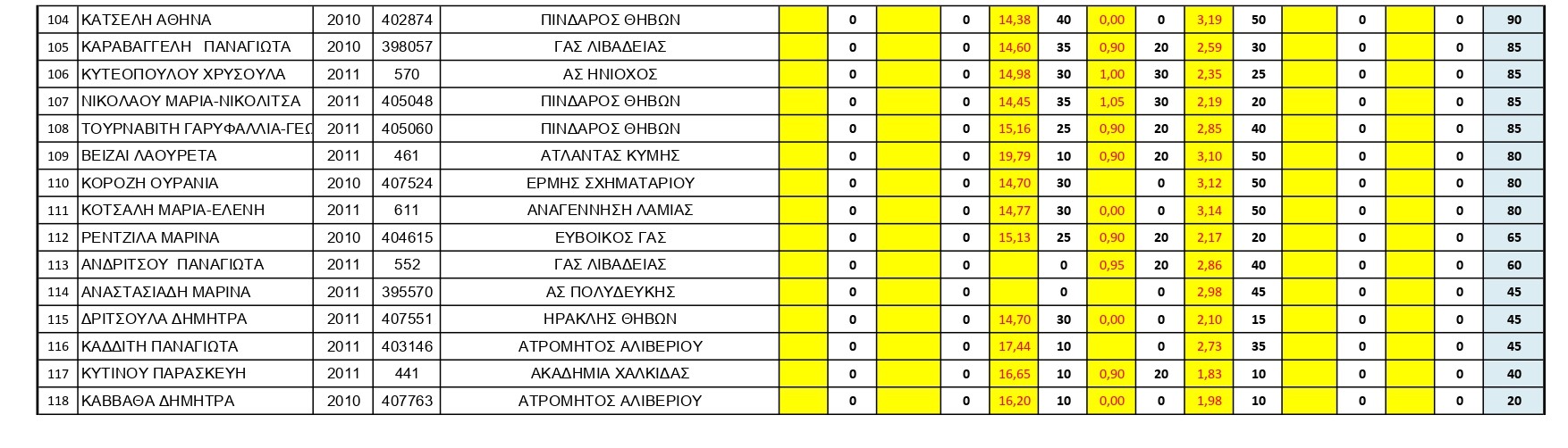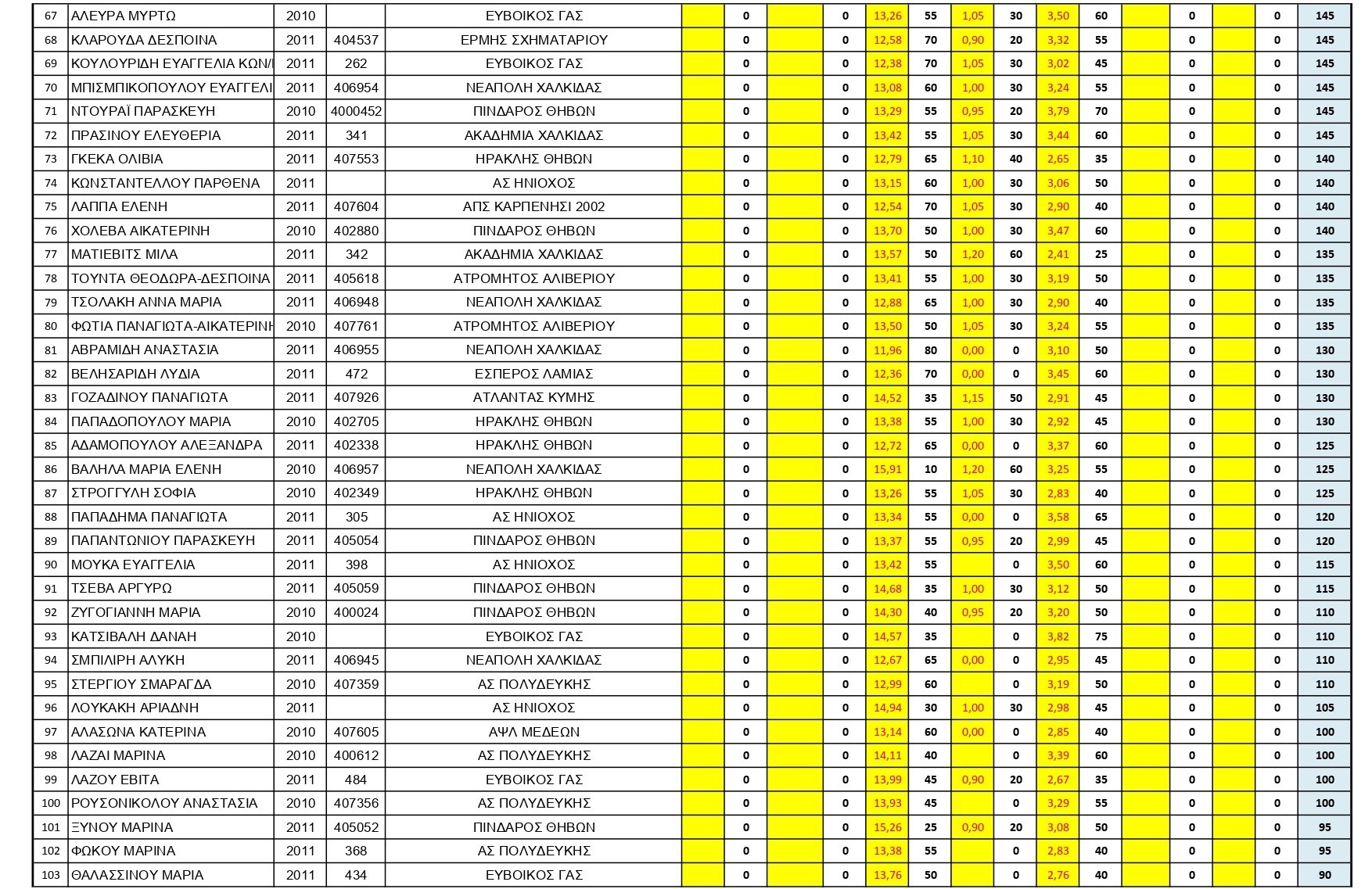 | 20 | ΕΥΑΓΓΕΛΙΔΟΥ ΕΛΕΝΑ | 2012 | 150 ΕΜΠ | 29.18 |